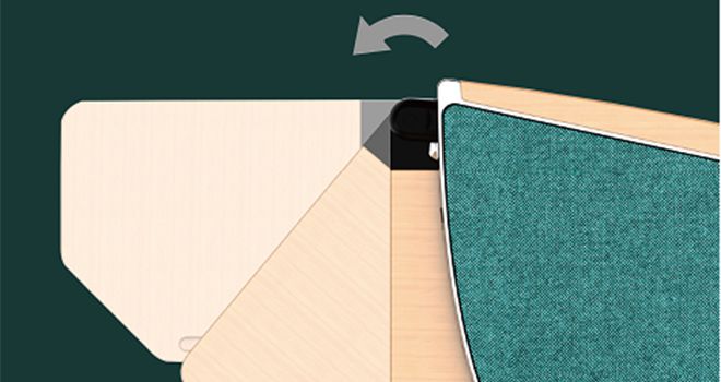 Aluminiowa wbudowana tablica do pisania może obracać się o 90° i zagłębiać się w podłokietniku, oszczędzając miejsce.