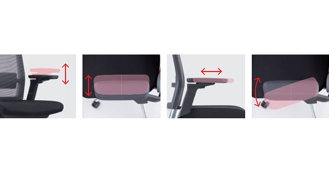 Regulacja w 4 kierunkach aby sprostać różnym postawom. Poduszka ze sprężystą poduszką zmniejszającą obciążenie ramion i zwiększającą komfort