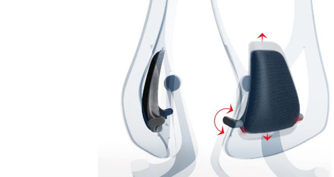 Projekt inspirowany jest szybowcami, wykorzystując opływowe linie do zarysowania wyglądu, szukając równowagi pomiędzy strukturą mechaniczną a estetyką geometryczną. Projekt opiera się na koncepcji „autonomicznej reakcji”. Pochylenie oparcia powoduje automatyczne przesuwanie się siedziska do przodu, przesuwając środek ciężkości siedziska do przodu i eliminując ukryte niebezpieczeństwo obracania się krzesła do tyłu podczas przerw na lunch. Sterowany linką mechanizm regulacji umieszczony w podłokietniku umożliwia szybkie i łatwe ustawienie fotela w odpowiednim położeniu.