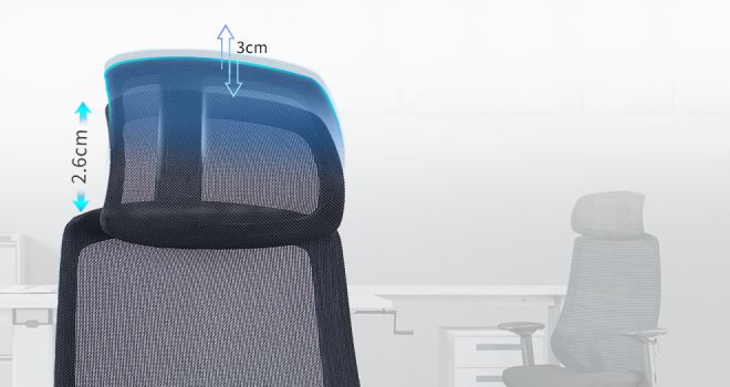 Zagłówek z regulacją wysokości i funkcją adaptacyjnego przesuwania o 3 cm
