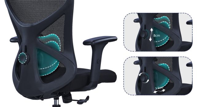 Ultra -wide Amortyzowane podparcie lędźwiowe z możliwością regulacji, aby zawsze chronić talię