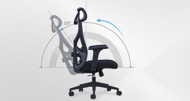Mechanizm przechylania z 3 blokadami i możliwością regulacji w zakresie 125°