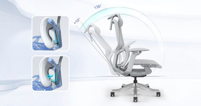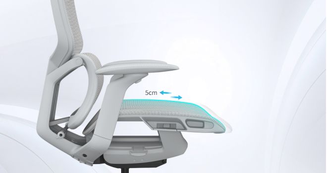 Regulowana głębokość siedziska 5 cm z poduszką siedziska pochyloną do przodu