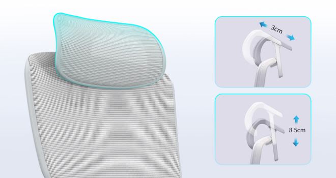 Zagłówek regulowany w czterech kierunkach, odciążający odcinek szyjny kręgosłupa
