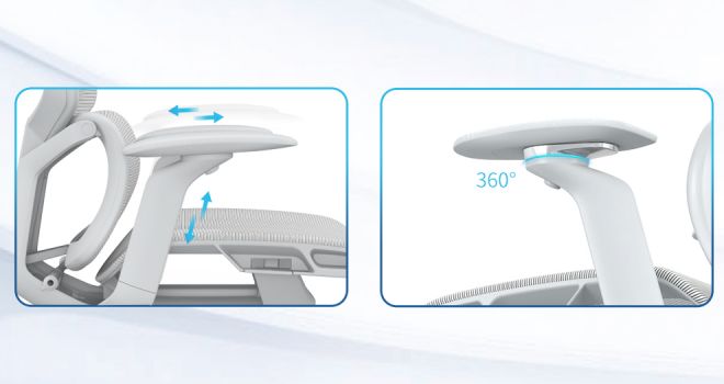 Zwykły: regulowane podłokietniki 4D Ulepszone: Podłokietniki regulowane 360°