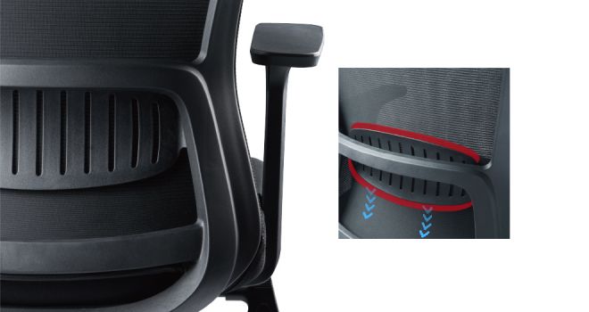 Konstrukcja poszerzająca się pośrodku lepiej dopasowuje się do odcinka lędźwiowego człowieka, umożliwiając dostosowanie fotelika do zmian pozycji siedzącej ludzkiego ciała.