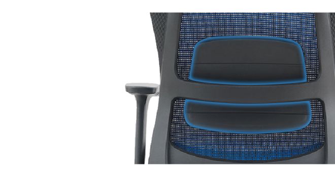 Bardzo duże podparcie lędźwiowe z gąbką, zapewnia pełne odciążenie pleców