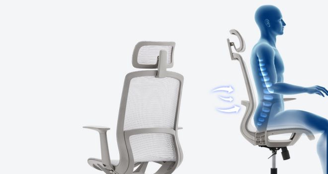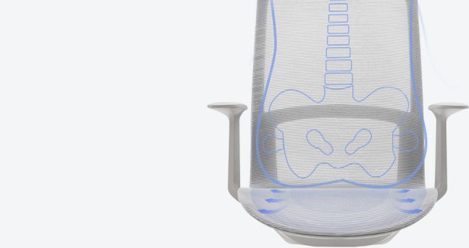 Elastyczne podparcie z pełnej siateczki, zintegrowana konstrukcja siedziska i oparcia