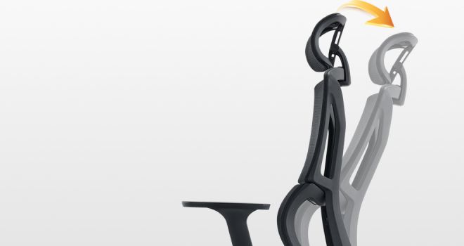 C- ukształtowany zagłówek ma ergonomiczny kształt z regulacją wysokości w zakresie 5 cm i możliwością obrotu o 45°.