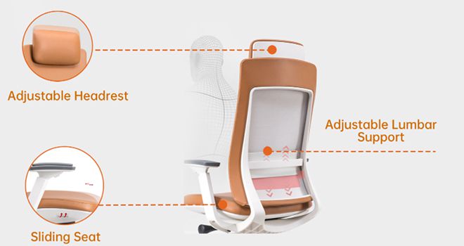 Regulowany zagłówek Regulowane podparcie lędźwiowe Fotel przesuwny
