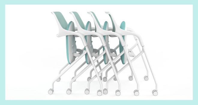 Kształt całości krzesła sprzyja funkcjonalnej aranżacji przestrzeni i pozwala na wygodne układanie w stosy. Można je zastosować w przestrzeni szkoleniowej o niewielkiej powierzchni lub w różnych formach nauczania.