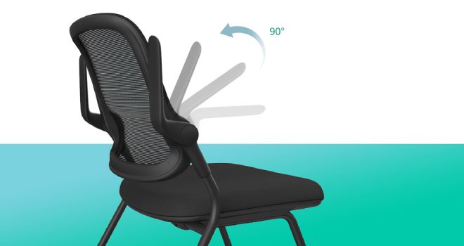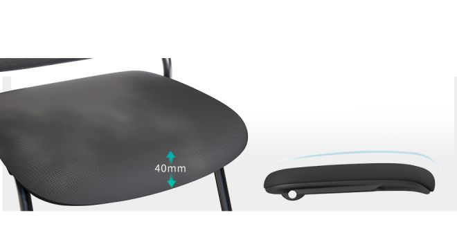 Podłokietniki w kształcie miecza, składane o 90°, co zapewnia elastyczne przechowywanie
