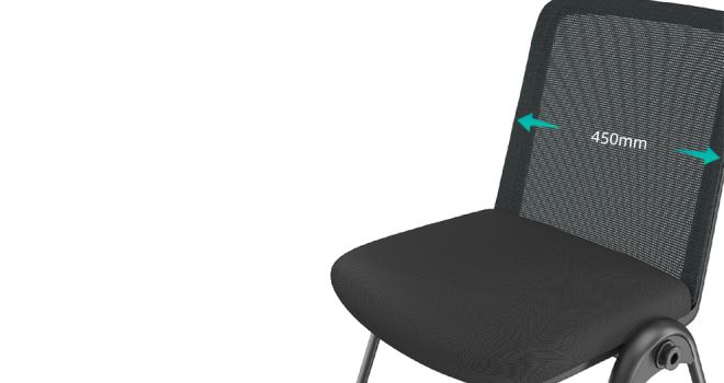 Głęboki siatkowy tył o szerokości 450 mm, stylowe wsparcie i mocna ochrona talii